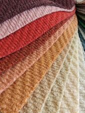 Den rige uldkvalitet giver tekstilet en naturlig fylde og varme, som tilfører møblerne et levende og harmonisk udtryk. Overfladen har en smuk struktur og dybde, der fremhæver materialets naturlige karakter og skaber en indbydende atmosfære i rummet.